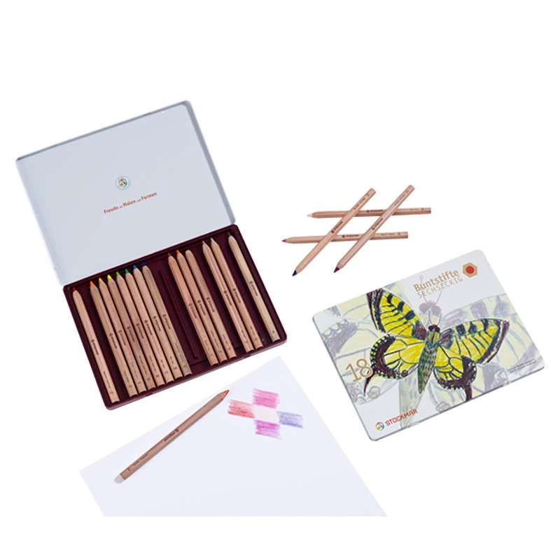 Die wasserfesten Stockmar Buntstifte haben eine extra starke, 6,25 mm dicke Farbmine und sind umschlossen mit einem Lindenholzmantel aus naturbelassenem Holz aus nachhaltiger Forstwirtschaft (FSC-zertifiziert)