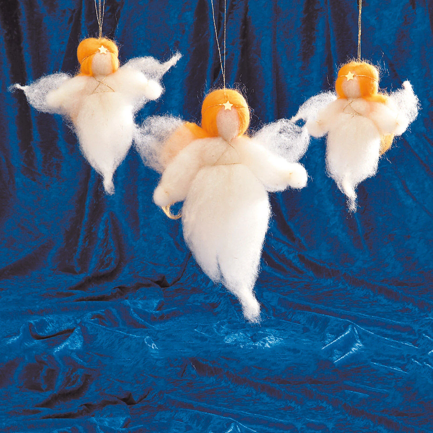 Mit einfachen Handgriffen wird das Wollvlies mit Hilfe von Fadenabknotungen und „streicheln“ in Form gebracht und anschließend mit ein paar Nadelstichen fixiert. Die Engel aus Märchenwolle sind wunderschön anzusehen und steigern die Vorfreude auf das Weihnachtsfest. Auch sehr schön als Traumfänger über dem Kinderbett. In der schönen Verpackung lässt sich das Bastelset auch optimal verschenken.
