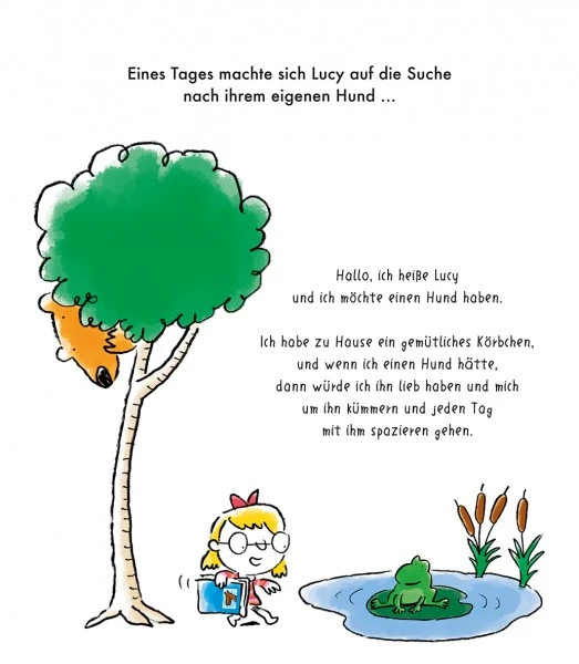 Ein gemütliches Körbchen steht schon für ihn bereit. Lucy wünscht sich nämlich einen Hund. Sie muss nur noch den richtigen finden. Aber wer bewirbt sich da bei ihr? Jedenfalls kein Hund. Bis zuletzt einer kommt, der sich mit dem Namen »Bär« vorstellt. Ziemlich groß ist er, aber Lucy will es mit ihm versuchen. Mit hinreißendem Humor erzählen Diane und Christyan Fox in Worten und Bildern die Geschichte einer unzertrennlichen Freundschaft, die nicht zu erwarten war.