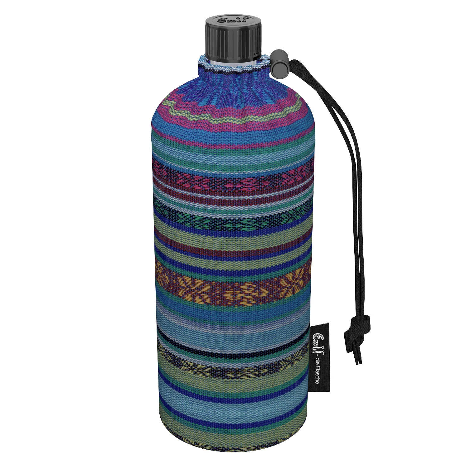 Geschmacksneutrale, spülmaschinenfeste Glasflasche mit isolierender, gepolsterter und waschbarer Hülle aus 100 % Baumwolle (k.b.A.). Mit einem Volumen von 400 ml ist die Trinkflasche bis 60º C befüllbar und auch für kohlensäurehaltige Getränke geeignet. Eine praktisch-schöne Glasflasche für unterwegs aus Bio-Webstoff mit schönen Ethno-Muster und einem „Blume des Lebens“-Symbol am Flaschenboden.