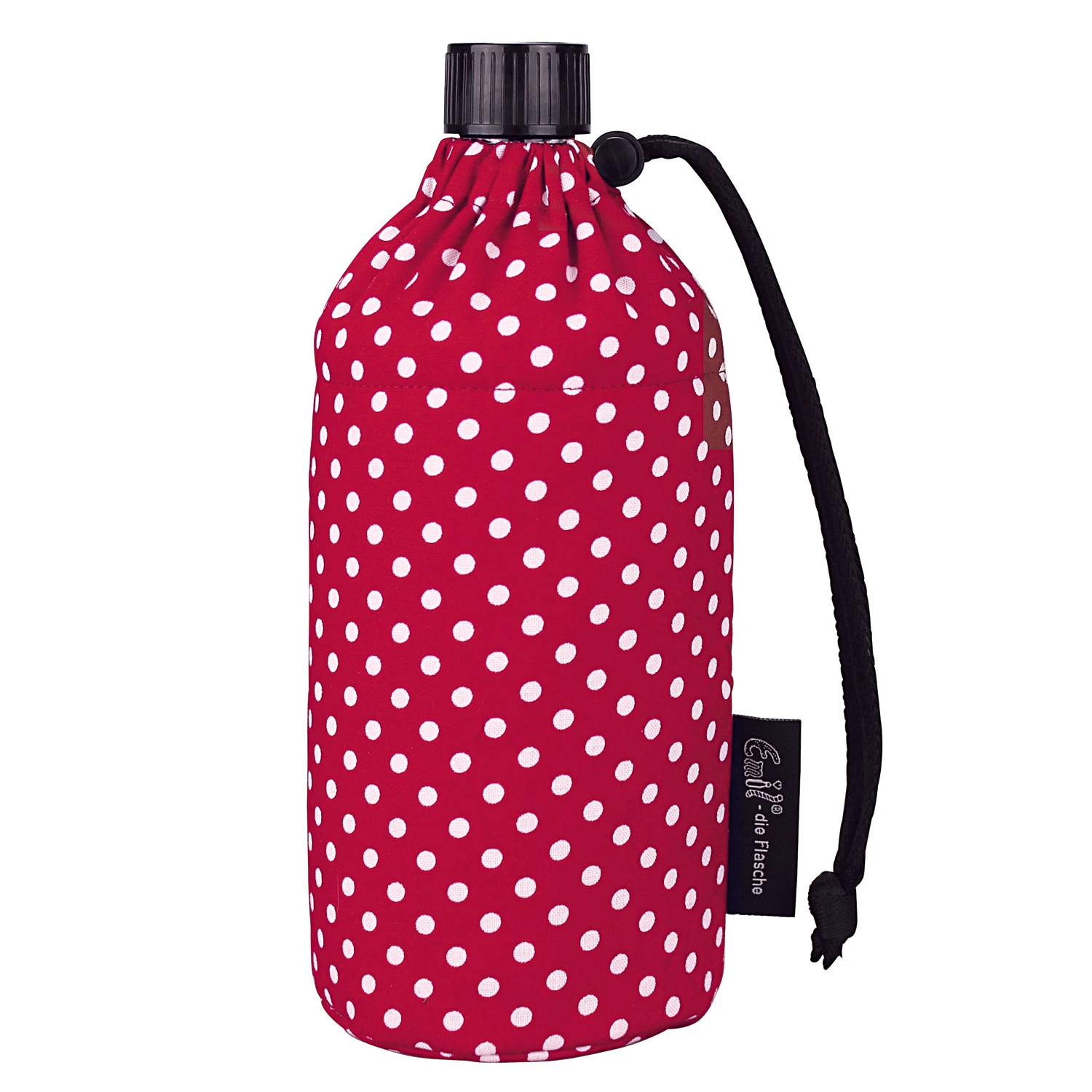 Die praktische Trinkflasche aus stabilem, spülmaschinenfestem Glas im bruchsicheren Isolier-Behälter ist mit einer gut isolierenden, gepolsterten und waschbaren Hülle aus 100 % Baumwolle (k.b.A.). ummantelt. Bis 60°C befüllbar, auch für kohlesäurehaltige Getränke. Am Flaschenboden findet man die Gravur „Blume des Lebens“. Hergestellt in Deutschland.