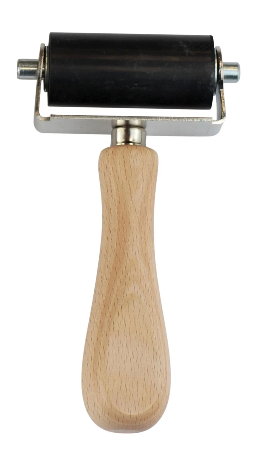 Professionelle, hochwertige Farbwalze mit Stiel aus FSC zertifiziertem Holz für den Linoleumdruck.