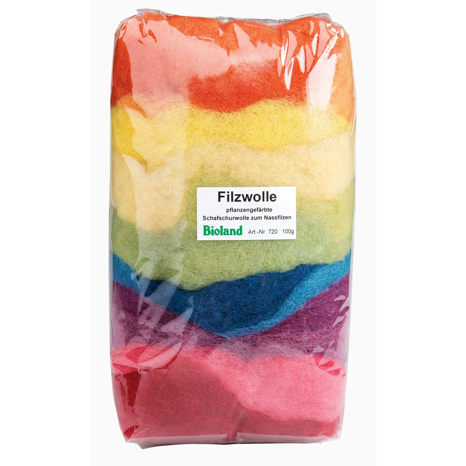 Wunderschöne, pflanzengefärbte Bioland-Schafschurwolle aus kontrolliert biologischer, regionaler Tierhaltung. Diese Filzwolle von Filges ist ideal zum Nassfilzen. Es können Bälle, kleine Perlen, Figuren, Blumen und ähnliches aus dieser Filzwolle entstehen. Die Farben sind auf einander abgestimmt und von schöner Leuchtkraft. Zum Filzen Zuhause, in Waldorfkindergarten oder Waldorfschule.