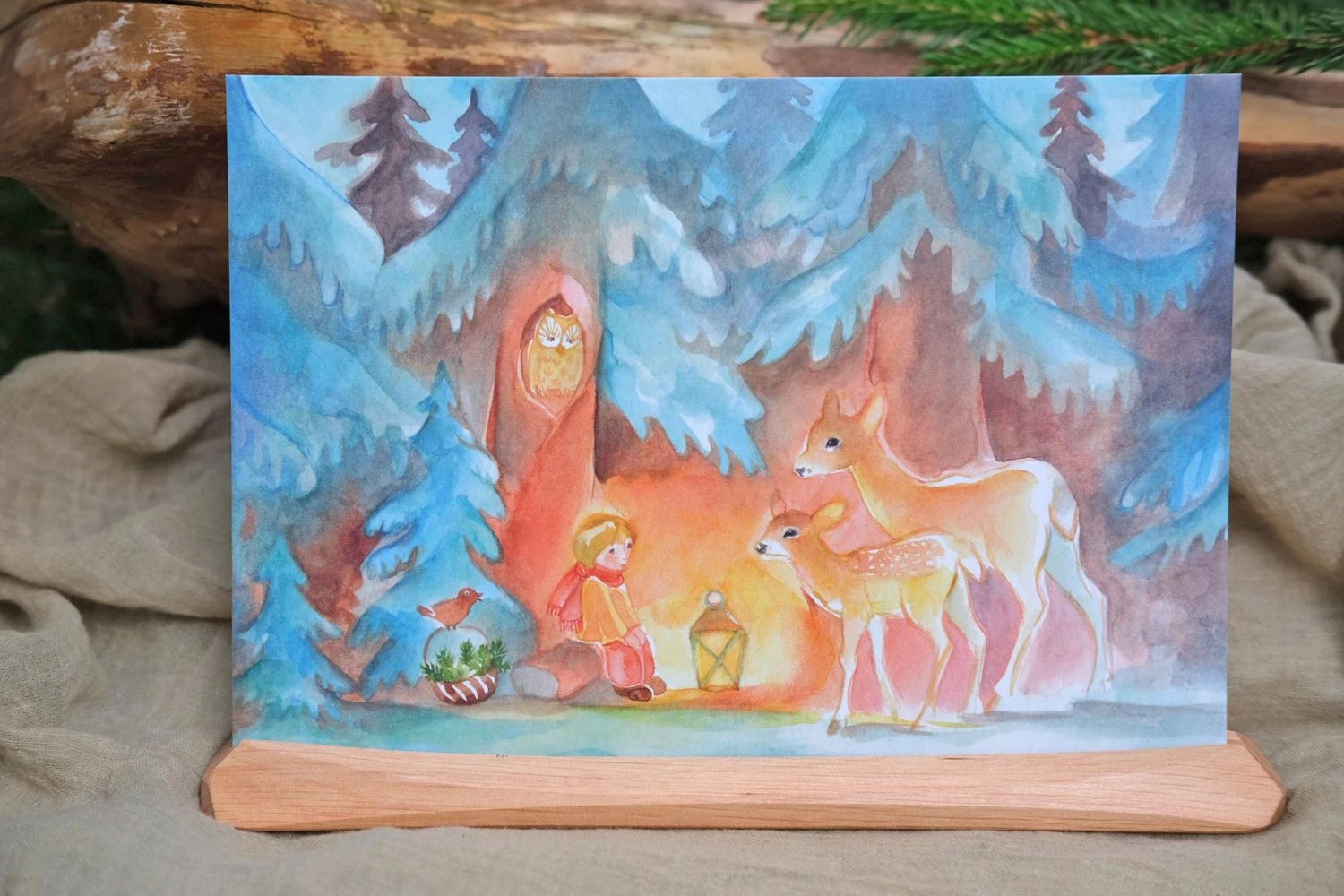 Postkartenständer aus geöltem Holz für Postkarten oder kleine Bilder. Ideal für den Geburtstags- oder den Jahreszeitentisch.