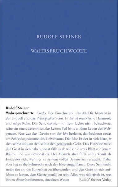 ‚Wahrspruchworte‘, in einer Ausgabe als Klappenbroschur. Original Satz der Gesamtausgabe, gekürzt, handliche Ausgabe. Wahlspruchworte gehören zu den Texten Steiners, die einen ein Leben lang begleiten können.