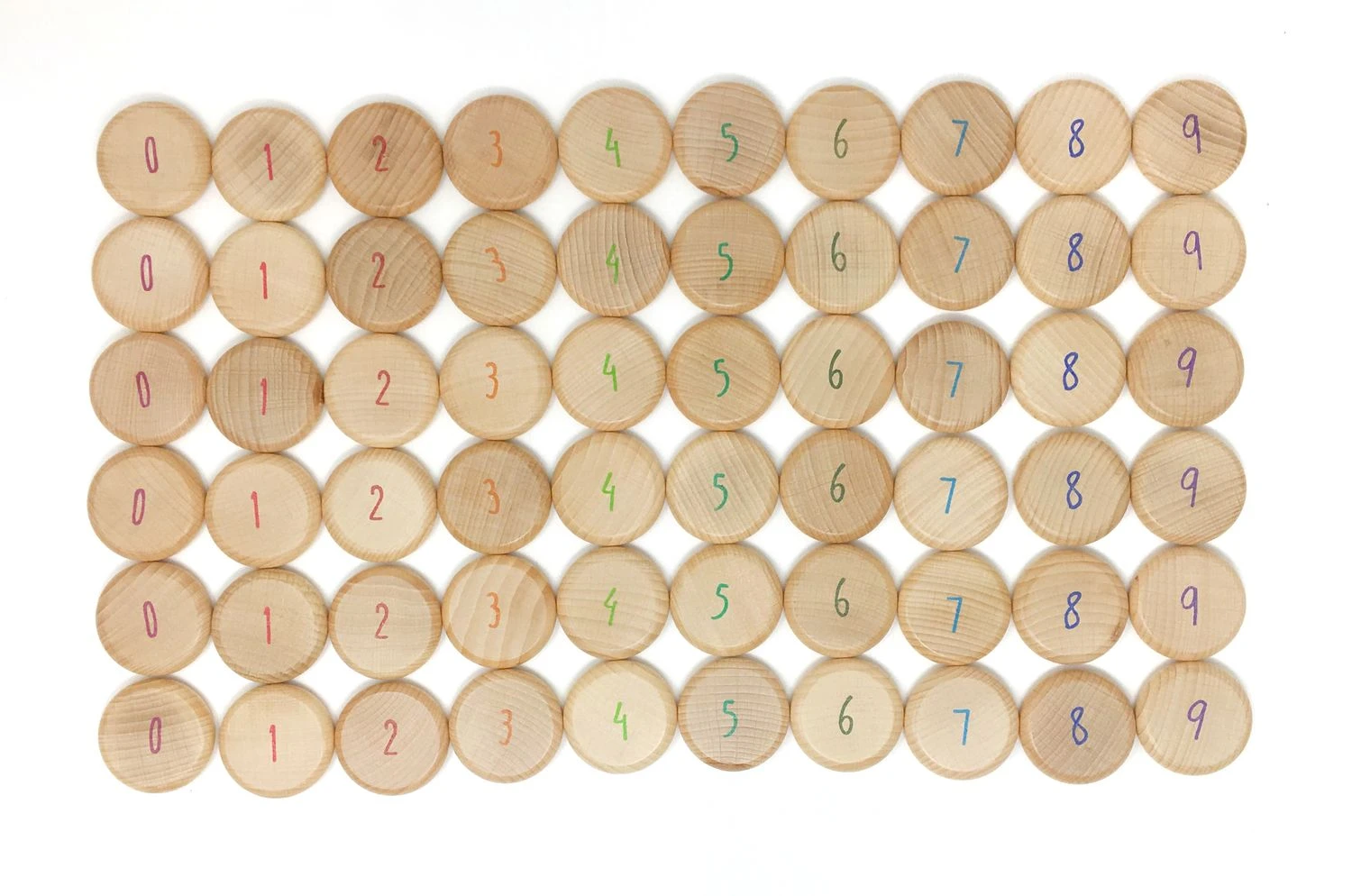 Inhalt: 60 Scheiben mit Zahlen, 1 Tasche