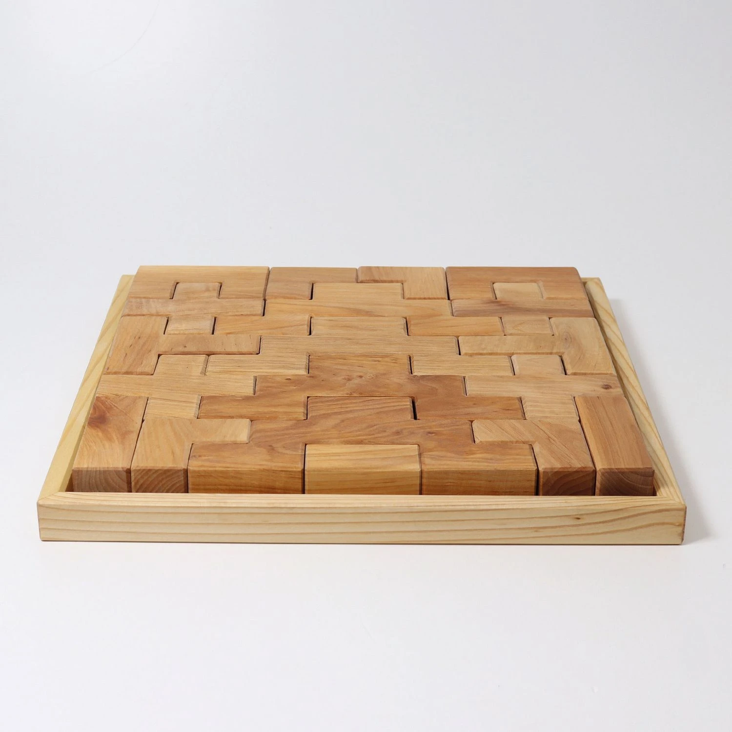 Die Bausteine aus geöltem Erlenholz können im Holzkasten praktisch und einfach verstaut werden. Die Steine aus Holz können auch in den Holzkasten wie ein Puzzle einsortiert werden.