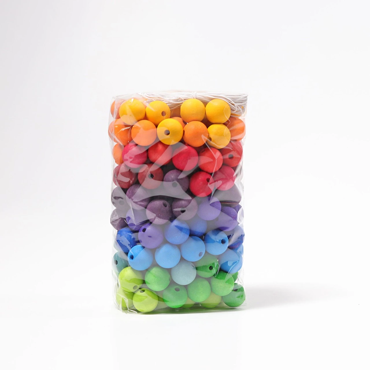 Holzperlen sind eines der elementarsten Spielmaterialien für Kinder. Beim Fädeln wird die Auge-Hand Koordination gefördert und die Feinmotorik geschult. Diese bunten Holzperlen sind in 12 Regenbogenfarben von hellgelb über Rot- und Blautöne bis hellgrün sortiert.