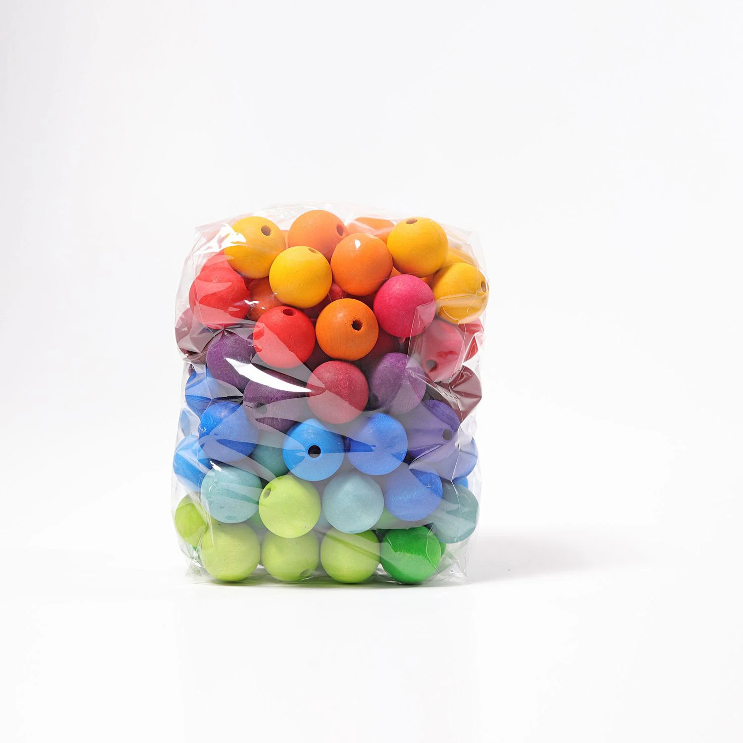 Holzperlen sind eines der elementarsten Spielmaterialien für Kinder. Beim Fädeln wird die Auge-Hand Koordination gefördert und die Feinmotorik geschult. Diese bunten Holzperlen sind in 12 Regenbogenfarben von hellgelb über Rot- und Blautöne bis hellgrün sortiert.
