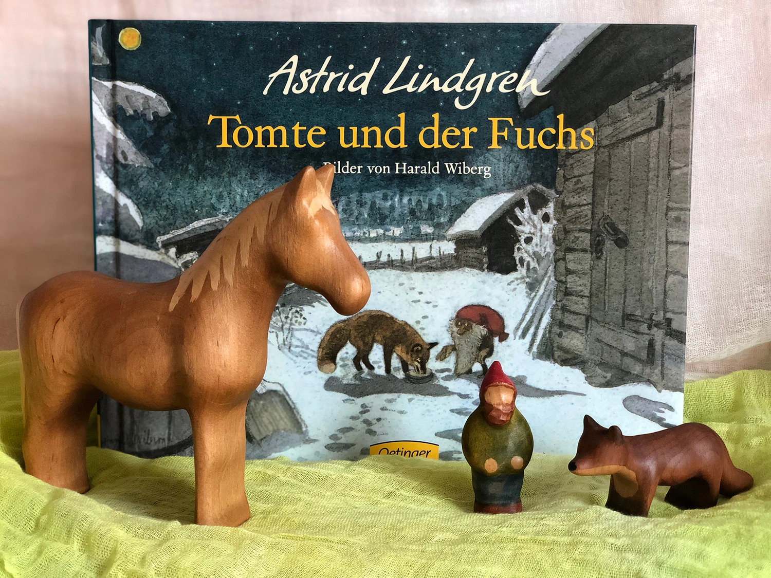 Aus Erlen- oder Ahornholz in ihrer typischen Form und Geste, mit ungiftigen, zertifizierte Farben im typischen Fuchsrot bemalt.