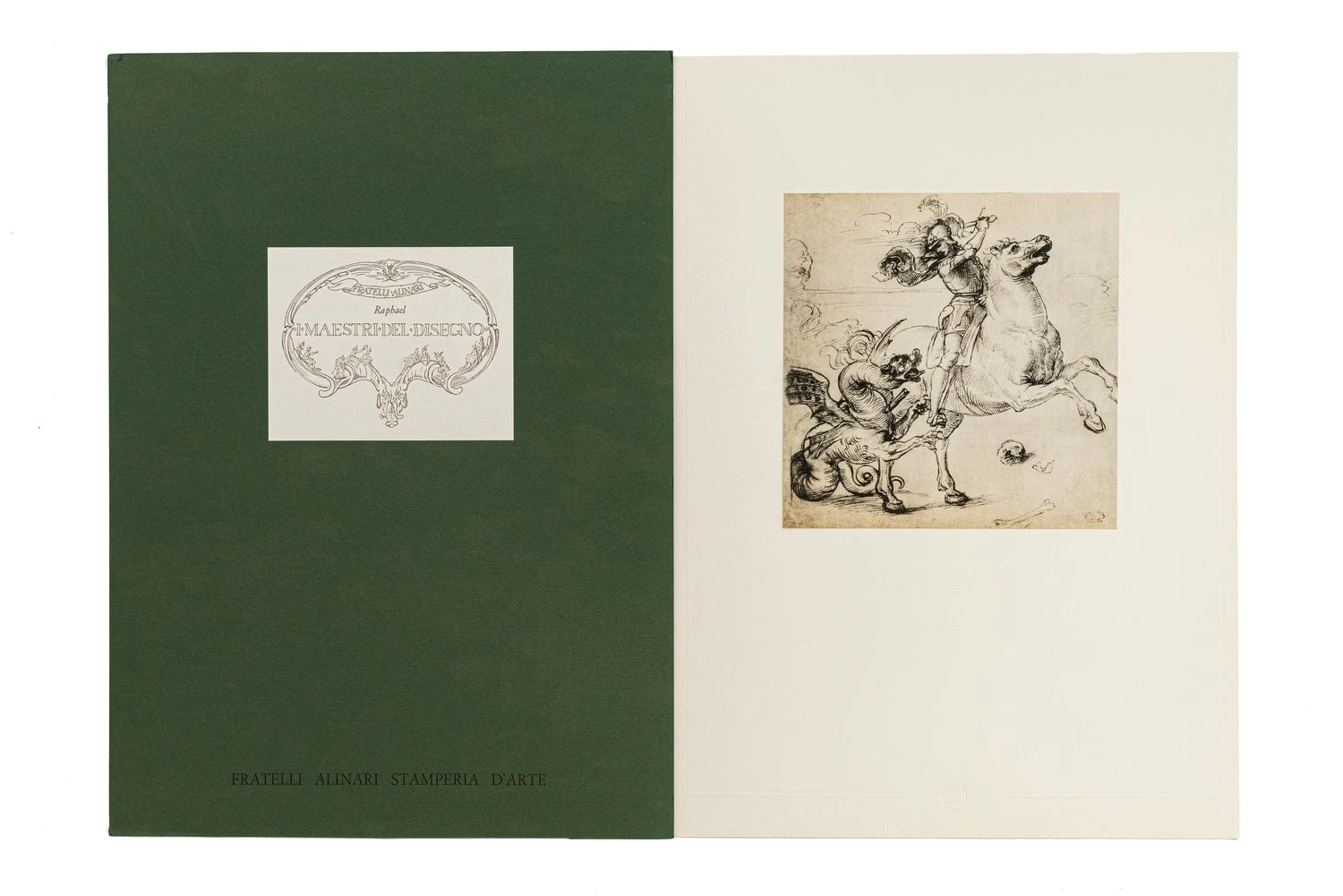 Die einzelnen Druckblätter auf Büttenpapier sind auf geprägten Passepartouts (ebenfalls aus Büttenpapier) aufgeklebt und werden jeweils einzeln in dunkelgrüner Schmuckmappe geliefert, so wie es für Raphael, il maestro del disegno, angemessen erscheint.