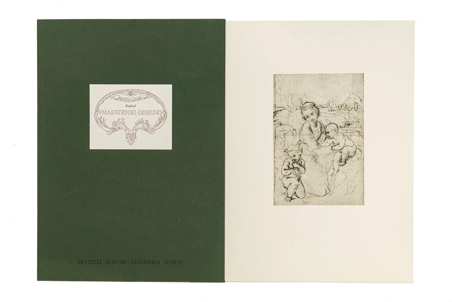 Jeweils in Schmuckmappe Die hochwertigen Drucke wurden im letzten Jahrhundert über Jahrzehnte in der Druckwerkstatt FRATELLI ALINARI STAMPERIA D’ARTE in Florenz als Einzelblätter nach alter Handwerkskunst hergestellt. Bei dem angewandten Lichtdruck-Verfahren handelt es sich um eine Technik, in der Elemente des Flach- und Tiefdrucks kombiniert werden, wodurch eine fast verlustfreie Reproduktion möglich wurde – ohne die heute übliche Auflösung in einzelne Druckpunkte (Pixel) bei den Offset- und Digitaldruckverfahren. Es ist dadurch eine optimale Bildwirkung fürs Auge und die Seele gewährleistet. Die einzelnen Druckblätter auf Büttenpapier sind auf geprägten Passepartouts (ebenfalls aus Büttenpapier) aufgeklebt und werden jeweils einzeln in dunkelgrüner Schmuckmappe geliefert, so wie es für Raphael, il maestro del disegno, angemessen erscheint.