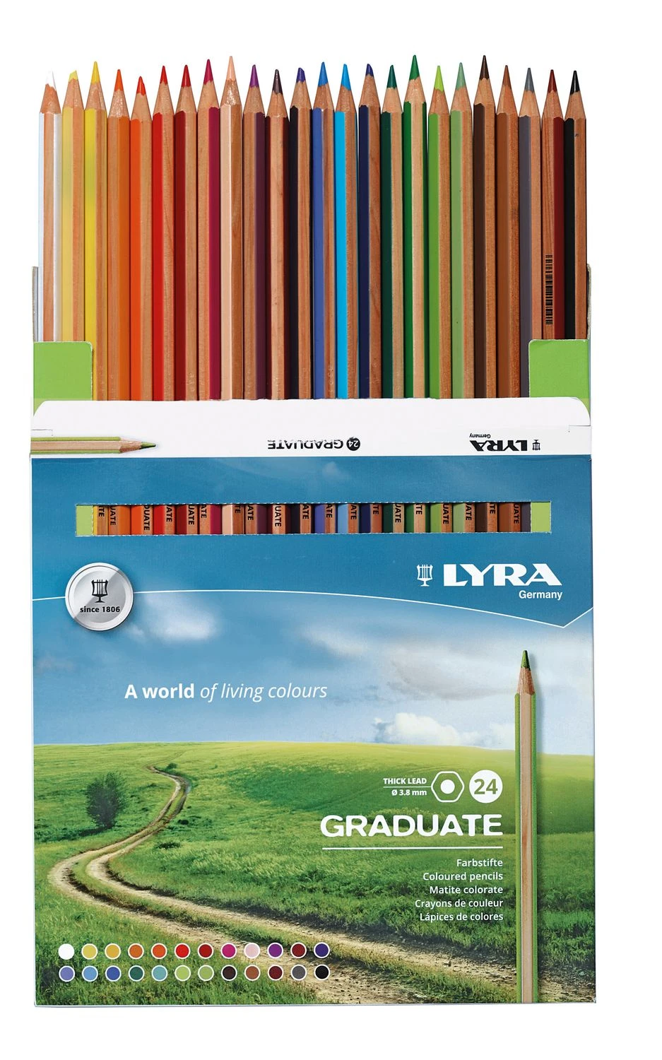 Dünne, hexagonale Buntstifte mit einer robusten und langlebigen Mine die sich leicht anspitzen lassen. Die Buntstifte mit ihren reichhaltigen und satten Farben, eignen sich perfekt für den Einstieg in die professionelle Malerei. Hergestellt aus PEFC-zertifiziertem Zedernholz.