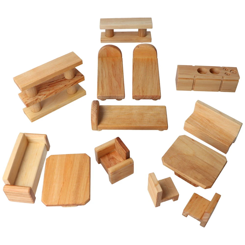 13 teiliges Möbelset für das Puppenhaus aus Holz, fertig montiert, von Decor.