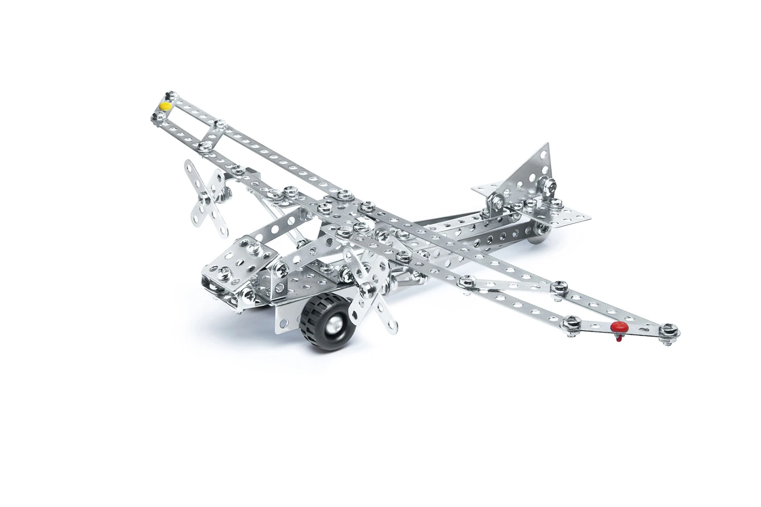 Mit diesem Metallbaukasten von eitech können mindestens 10 Modelle gebaut werden. Flugzeug, Windmühle oder Kran: der Spaß beim Tüfteln ist sicher! Dieser Metallbaukasten enthält über 340 Teile.