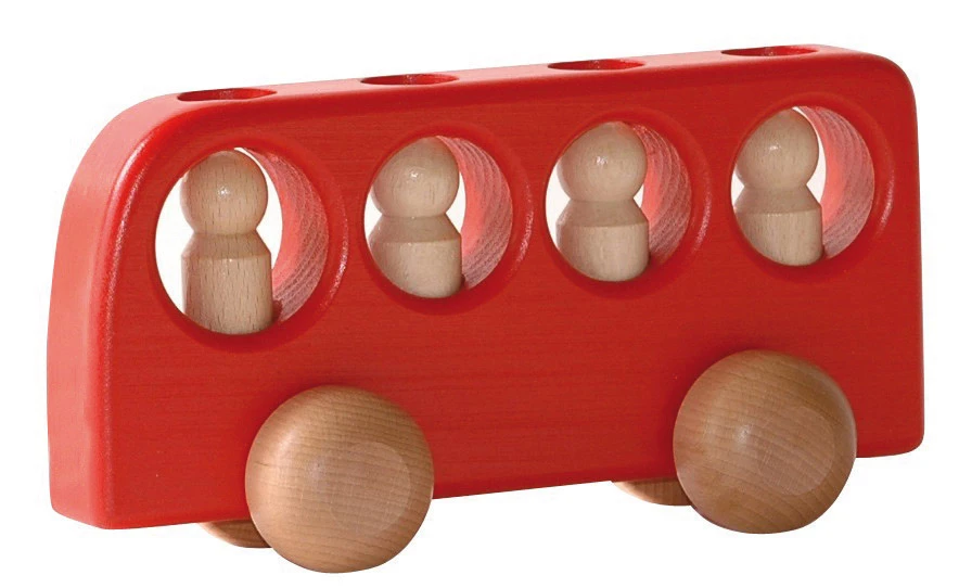 Schlicht und robust konstruiert, regt der formschöne Holzbus mit 4 Männlein Kinder an, ihre Feinmotorik zu schulen und ihren Bewegungsradius zu erweitern. Mit seinen vier Männlein lädt der rote Bus zum freien und fantasievollen Spielen ein, fördert die Kreativität und bietet ein abwechslungsreiches Spielvergnügen. Der Holzbus eignet sich durch seine Stabilität auch besonders gut als Spielzeug im Waldorfkindergarten oder anderen Kleinkindgruppen.