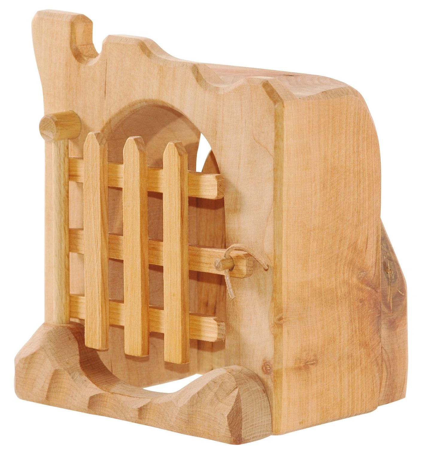 Das Gefängnis als Ergänzungsteil der Ostheimer Ritterburg ist formschön gestaltet und verfügt über eine Gittertür aus Holz. Die Tür des Gefängnisses kann geöffnet und mit Hilfe eines Lederbandes geschlossen werden. Das Gefängnis fügt sich in die Burgmauer der Ostheimer Ritterburg ein, kann aber auch freistehen und mit Holzfiguren und Holztieren bespielt werden.