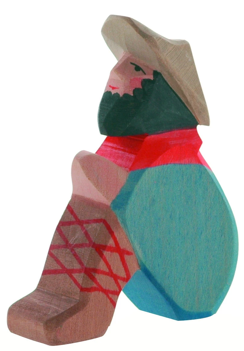 Wie alle Ostheimer Figuren ist auch der sitzende Hirte ein Holzspielzeug, welches in liebevoller Handarbeit bemalt wird.