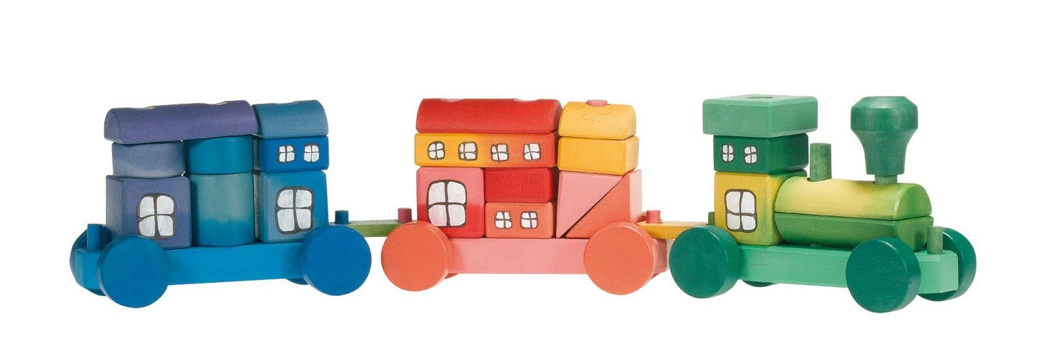 Der bunte Zug von Ostheimer mit seinen farbigen Einzelbausteinen ist ein Blickfang im Kinderzimmer. Das Kind kann die Einzelteile des Ostheimer Zuges wie bei einem Stapelturm auf die Wagons der Eisenbahn stapeln. Das Spiel mit dem Ostheimer Zug fördert die Feinmotorik und die Kreativität des Kindes.