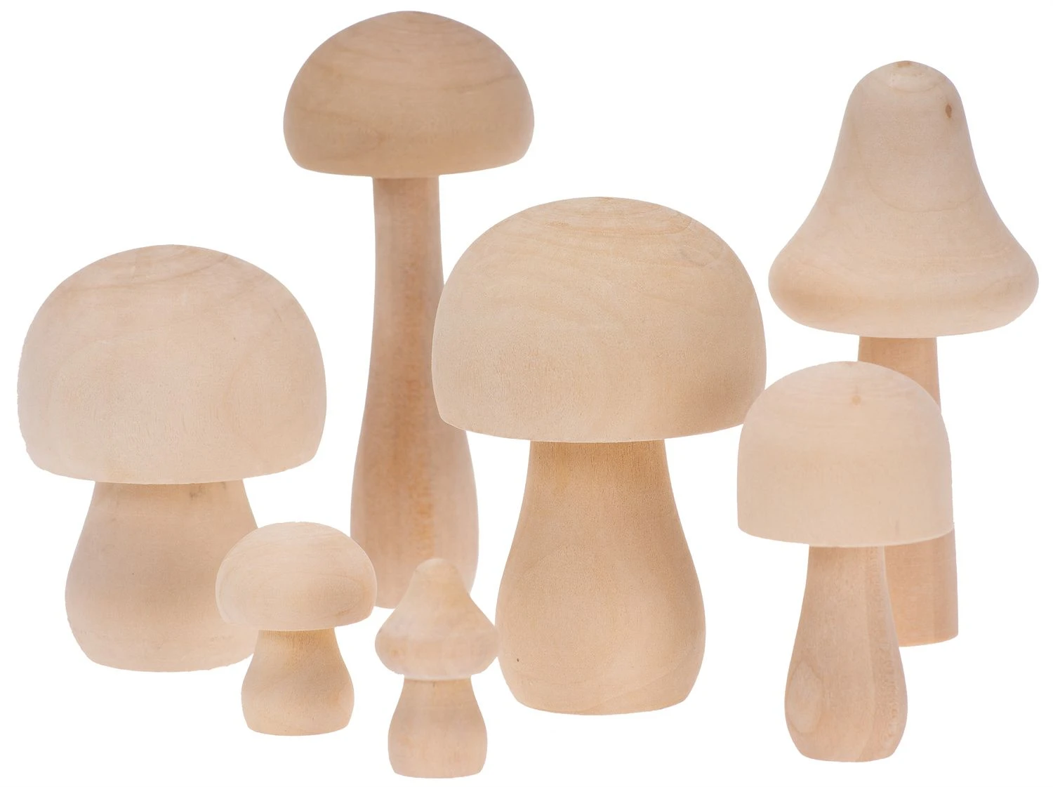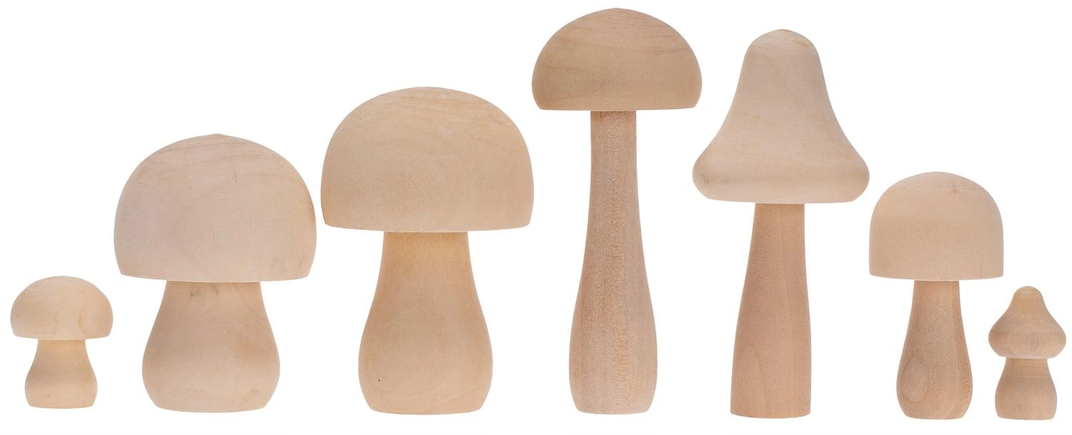 Die Pilze sind naturbelassen aus massivem Holz gedrechselt und fein geschliffen. So können sie von den Kindern fantasievoll bemalt und gestaltet werden. Ob Fliegenpilz, Maronenpilz, Champignon oder Pfifferling… hier werden alle Pilzsammler glücklich.