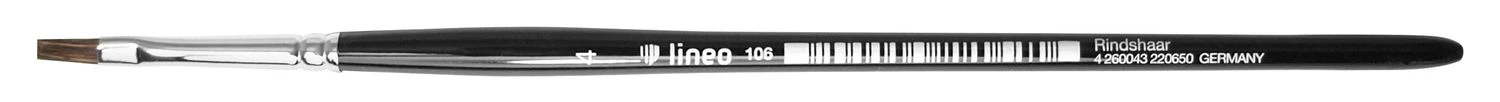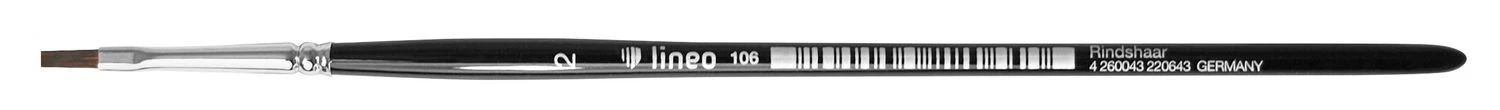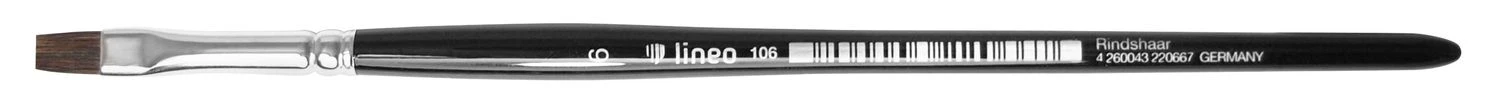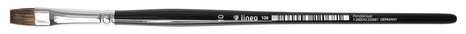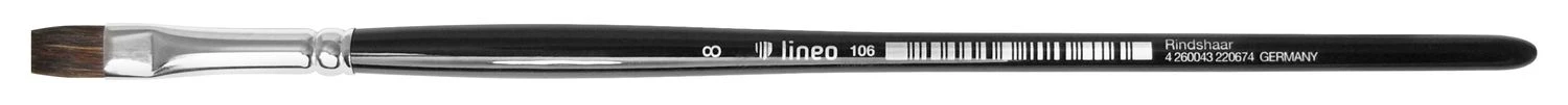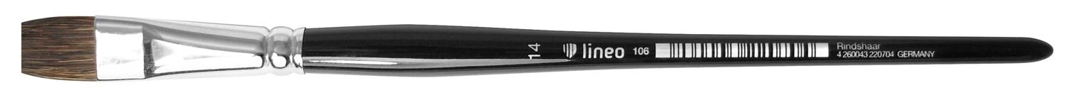 Hochwertiger Pinsel aus Rindshaar mit gerade zugeschnittenen Borsten für die Aquarellmalerei. Die Haare des Pinsels sind kräftig und gleichzeitig elastisch. Die Silberzwinge, welche Pinselkörper und Stiel aus Naturholz verbindet, ist aus gezogenem Messingrohr.