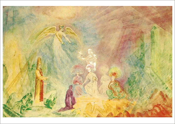 Motive aus Goethes „Märchen von der grünen Schlange und der weißen Lilie“ sowie aus Rudolf Steiners „Pforte der Einweihung“.