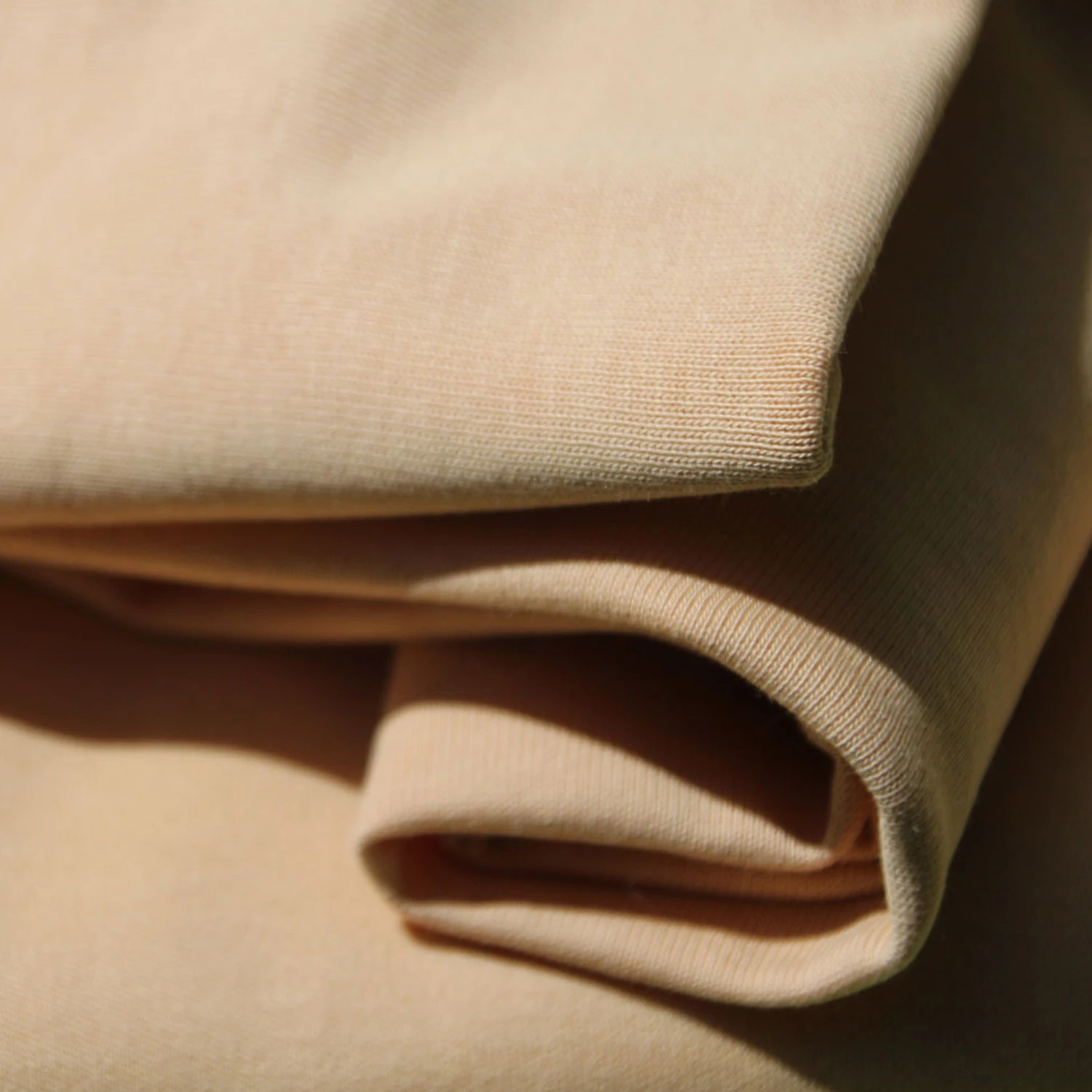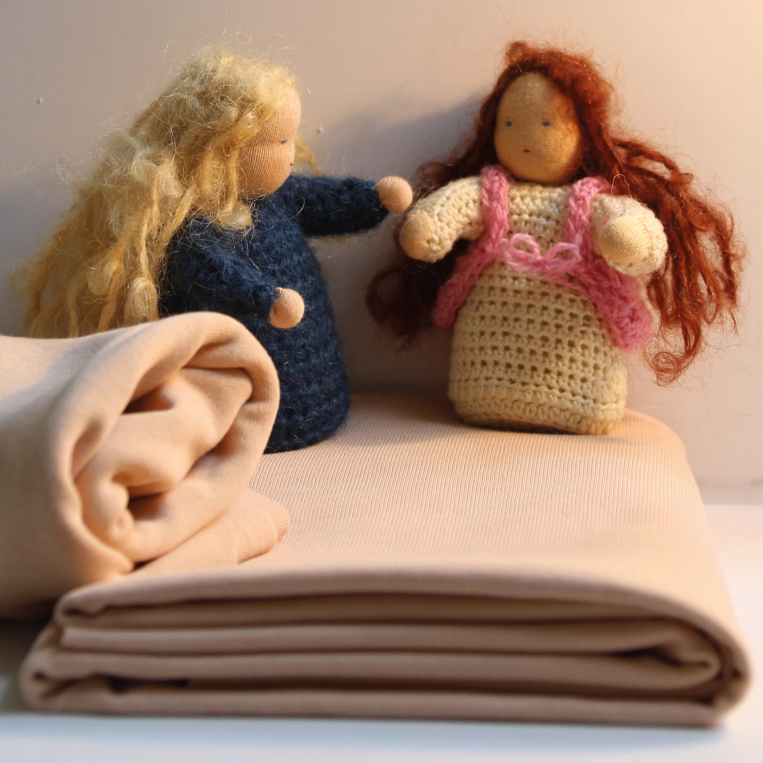 Angenehm weicher Puppentrikot aus Bio-Baumwolle in einer natürlichen Hautton-Farbe zur Herstellung von eigenen Puppen.