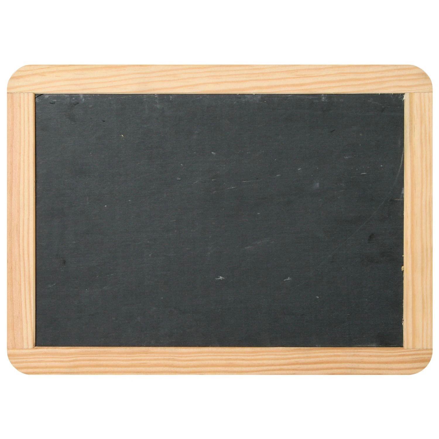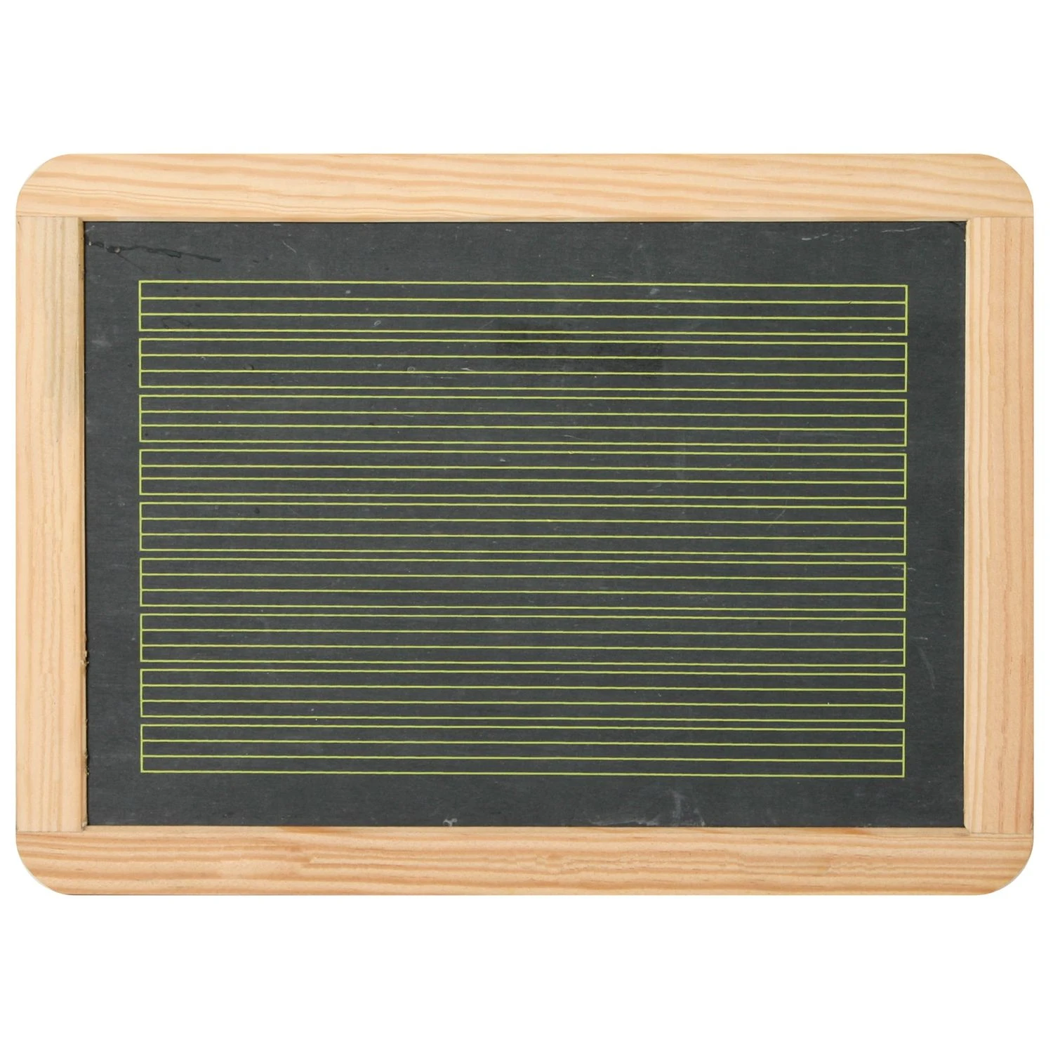 Die nostalgische Schiefertafel hat auf einer ihrer beiden Seiten Linien zum Schreiben üben.
