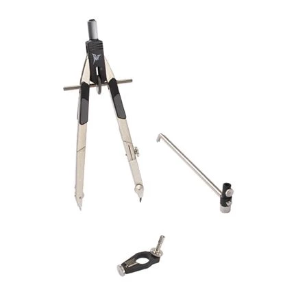 Ein hochwertiger Schul-Zirkel mit Hebelautomatik und abknickbaren Gelenken. Die Grobeinstellung erfolgt schnell und einfach über eine beiderseits der Schenkel angebrachte Hebelmechanik. Die Feineinstellung ist über die kräftige Mittelspindel möglich.