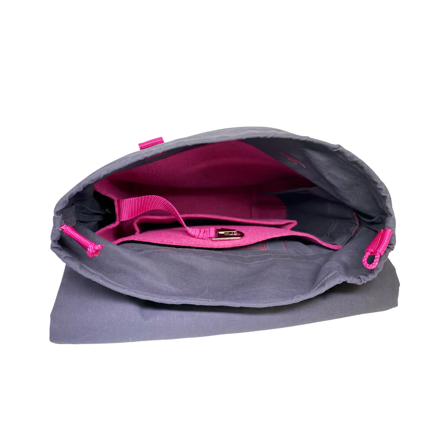 Extra Bücherfach, zusätzliche Innentasche, herausnehmbare recycelte RPET-Filz-Innentasche aus Oceanplastik, Karabiner-Schlüsselband, verstellbare Schultergurte, reflektierende Mappenschlösser.