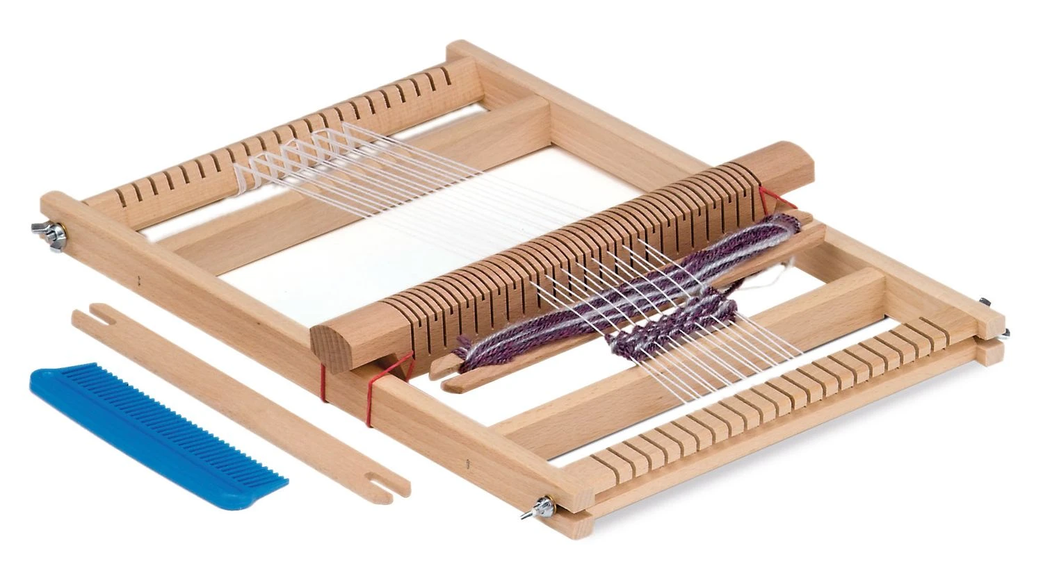 Mit diesem klassischem Schulwebrahmen lassen sich wunderschöne Webarbeiten erstellen. Da Kett- und Warenbaum drehbar sind, lassen sich auch längere Teile herstellen. Der Webrahmen kommt mit 2 Schiffchen, 1 Anschlagkamm und Webanleitung mit abgebildetem Webmuster.